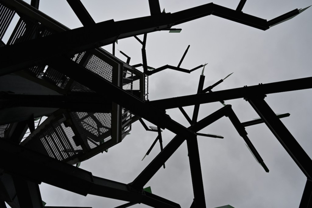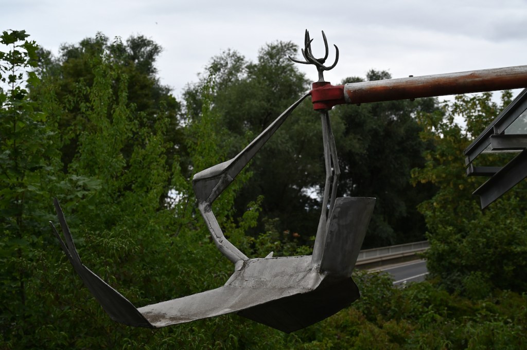 art along the way – metal tree, good&bad, crazy bird